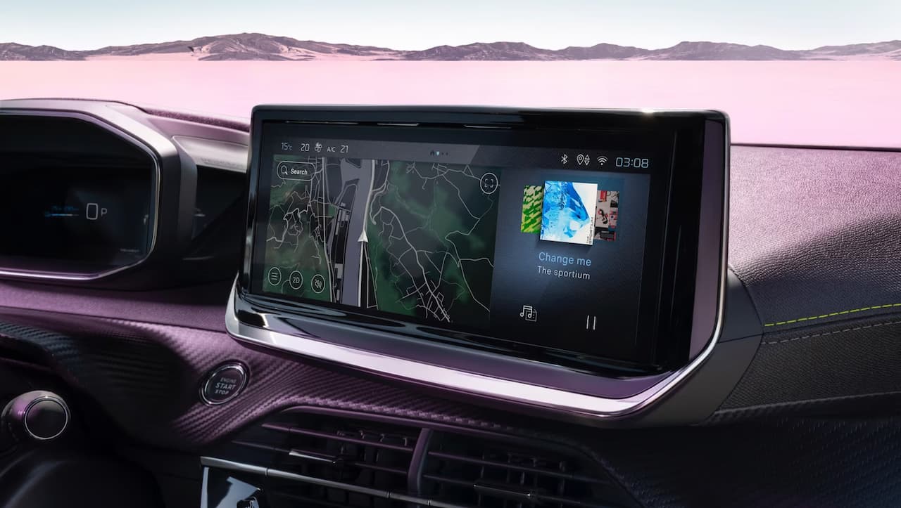 Restez connecté grâce aux systèmes d’info-divertissement PEUGEOT i-Connect ou i-Connect® Advanced®** avec mises à jour régulières à distance, dont l’ergonomie rappelle celle d’un smartphone. Avec la fonction Mirrorscreen sans fil et la navigation 3D connectée avec reconnaissance vocale en langage naturel, voyagez en toute sérénité. Votre smartphone se recharge par induction dans l’espace dédié de la console centrale.